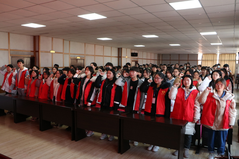 志愿者社长周曼学宣读了《学雷锋志愿服务月倡议书》,号召同学们弘扬雷锋精神,把志愿精神洒满校园;随后,优秀志愿者代表朱明珠带领全体志愿者共同宣誓,高亢的誓言彰显了卫校青年志愿者们弘扬雷锋精神的热情以及对志愿活动的热爱。