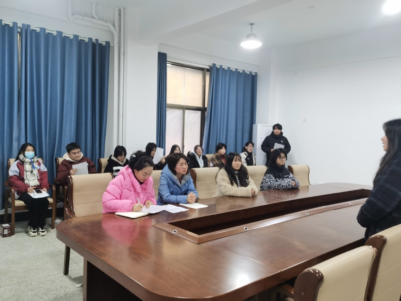 护理系团总支书记侍雪琴老师,孙雪松老师及两名学生副书记一同面试,结合实际我系情况,按照公平、公正、公开的原则,综合候选人日常工作表现、现场表现以及学习方面最终确立团总支新一届学生干部。