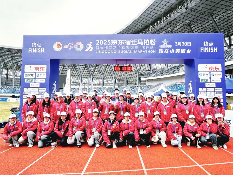 2025年3月30日上午7:30,2025京东宿迁马拉松暨大运河马拉松系列赛(宿迁站)在项王故里景区鸣枪开跑。来自14个国家和地区的15000名跑者齐聚宿迁,在春日暖阳下逐梦奔跑。宿迁卫校积极响应市卫健委号召,组织500余名学生志愿者投身赛事医疗保障工作,100余名志愿者开展啦啦队氛围营造,以专业素养和青春热情为赛事安全保驾护航,圆满完成任务并获得组委会及参赛选手的高度评价。
