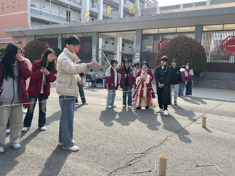 投壶承古趣:投壶竞技区欢声笑语不断,学生们挽袖搭箭,在“不贯不释”的礼仪中重温古人宴饮之乐。