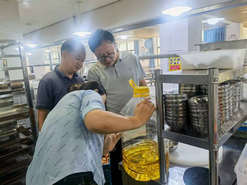 检查组深入食堂后厨、食品仓库、餐具消毒区等重点场所,仔细查验食材采购记录、食品贮存条件和保质期管理情况,随机抽查了从业人员健康证明及培训记录,并重点检查了食品加工操作规范、餐具消毒设备运行状态及“明厨亮灶”系统全覆盖落实情况。结合秋季食品安全工作特点,包处长强调要严格冷链食品溯源管理,认真落实48小时食品留样制度,进一步强化防鼠防虫措施,彻底消除安全隐患。食堂负责人表示,暑假期间已对后厨设备和环境卫生进行了全面检修和清理,新学期还将持续优化菜品结构,丰富供餐种类。