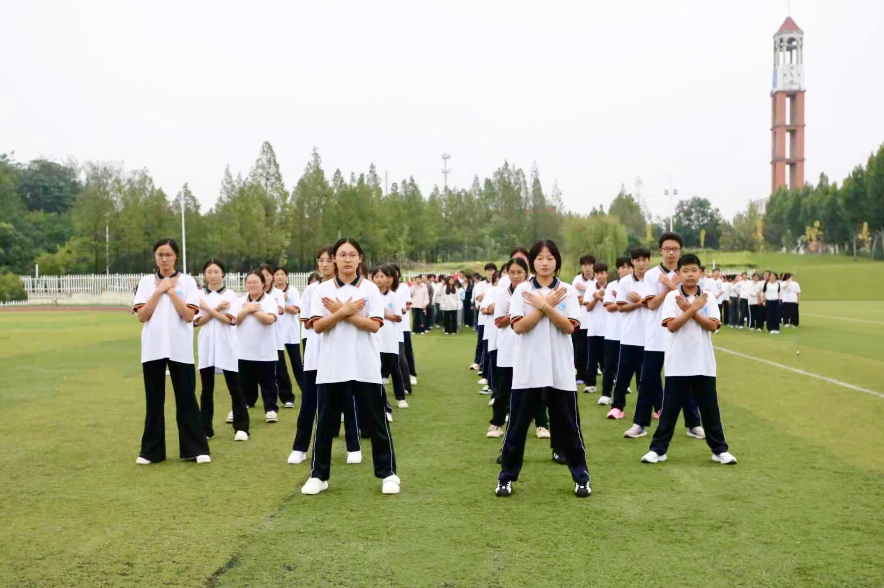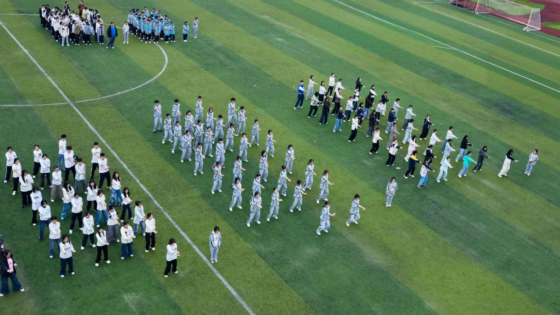 赛场上,各班学生精神饱满,身着统一服装,在领操员的带领下动作规范、整齐划一的完成了全套展示,展现出良好的团队精神。