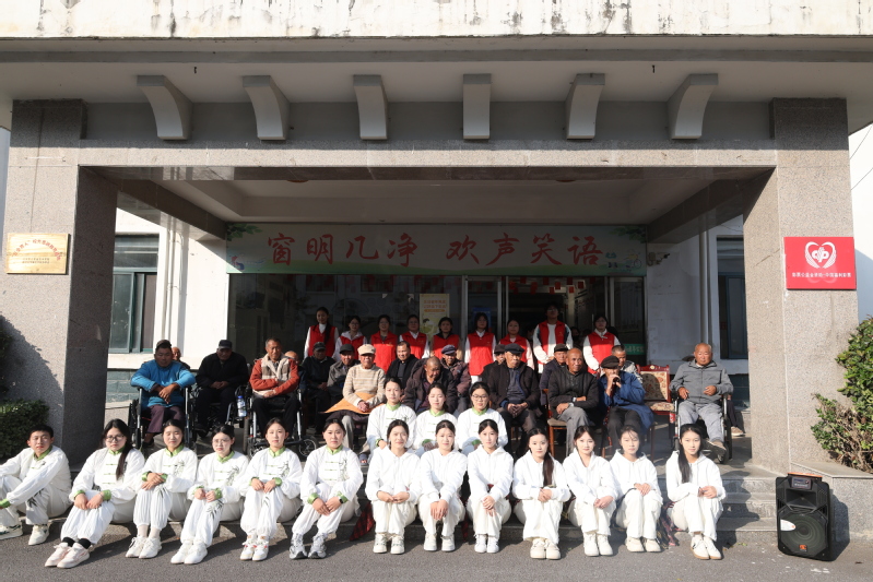 其中,由第五党支部党员教师与仁爱志愿者服务队共同演绎的《八段锦手指操》尤为亮眼。党员教师与志愿者们带领老人们一同活动手指,动作轻柔舒缓,既贴合老年人身体状况,又传递出党建引领下的暖心关怀。